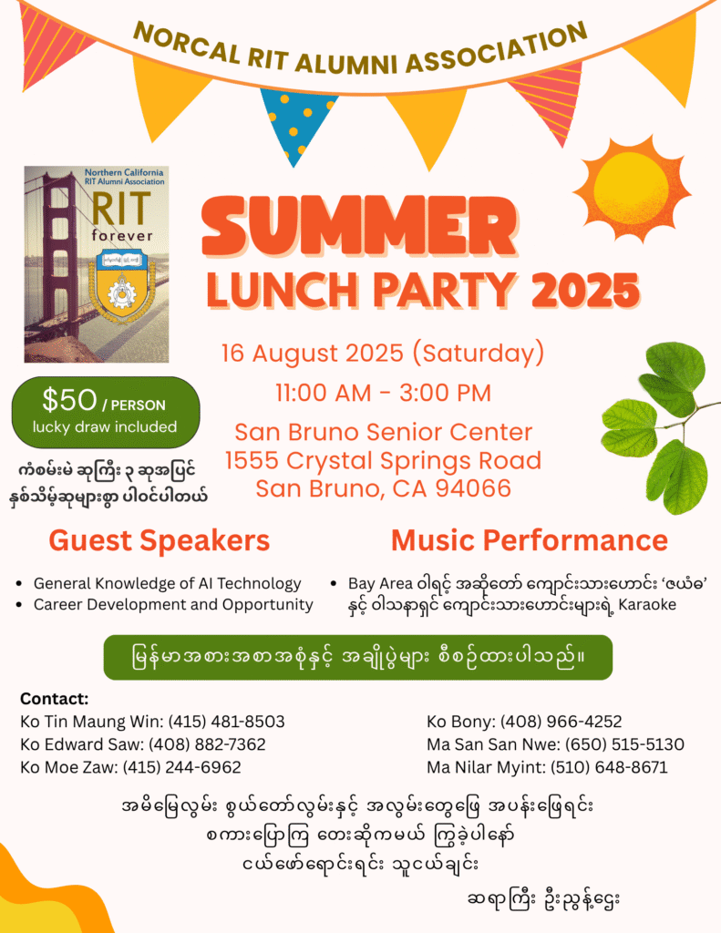Summer Lunch Party 2025 Summer Lunch Party 2025 2025 စက်မှုတက္ကသိုလ် ကျောင်းသူ/သားဟောင်းများ မိတ်ဆုံစားပွဲ